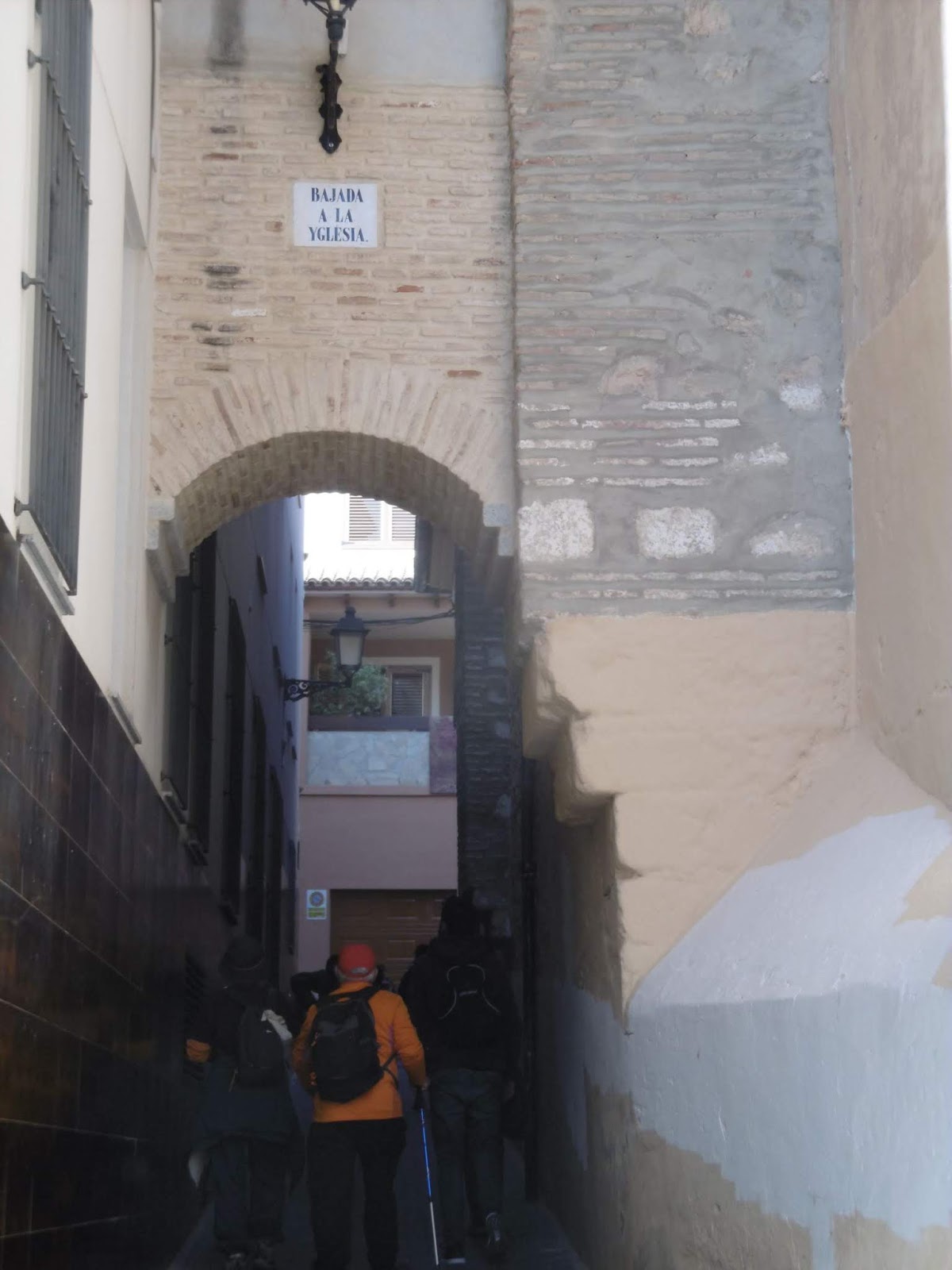Isabel ens va fer una volta per Tavernes, vam anar a l'església on ressaltava el rellotge de sol, i des d'allà Isabel ens va parlar del mur, un lloc privilegiat al poble per la seua vista. Vam creuar pel portal de la Valldigna, per un estret carreró que s'endinsava per la sagrera de l'església i anava remuntant les darreres cases.