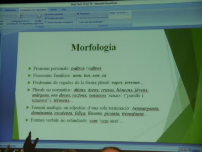 Després vam anar a escoltar una conferència sobre la parla penedesenca. A les fotos de les diapositives de més avall us podeu fer una idea del que ens van contar.