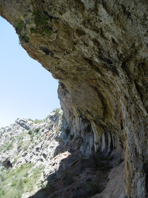 Vam passar a l'altra vora del barranc on continuava la senda, aquesta anava agafant alçada i ens anava donant magnificència del paisatge amb el barranc com a espina dorsal en la fondària, com un rèptil de pell resseca, d'escates de pedra de riu que desapareixia en la llunyania, amb serralades a banda i banda farcides de boscúria.
